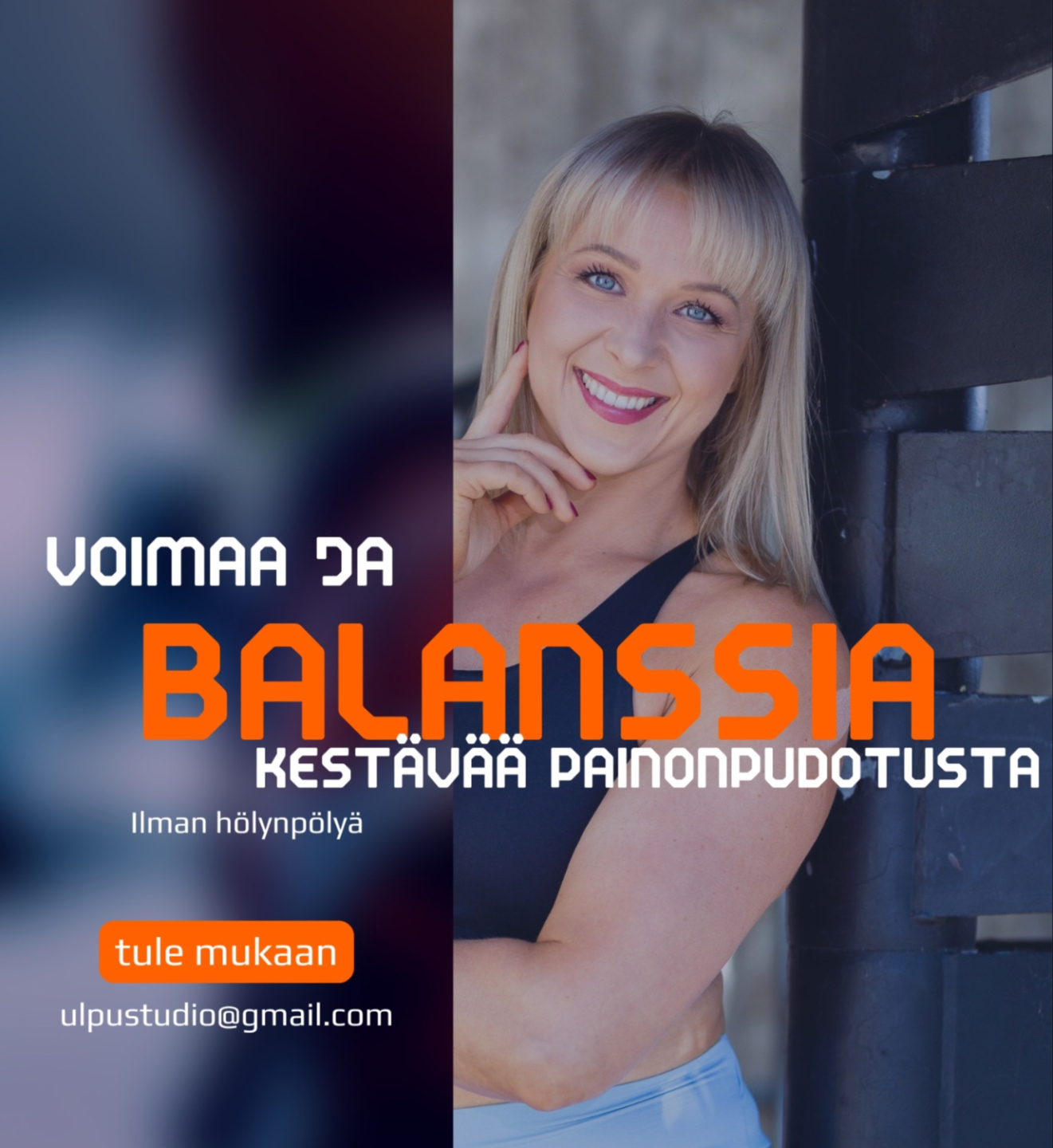Ulpustudion yksilövalmennus kustantaa 400eur/kk, mutta nyt pÀÀset Voimaa ja balanssia -valmennukseeen edullisesti 129 âŹ/kk